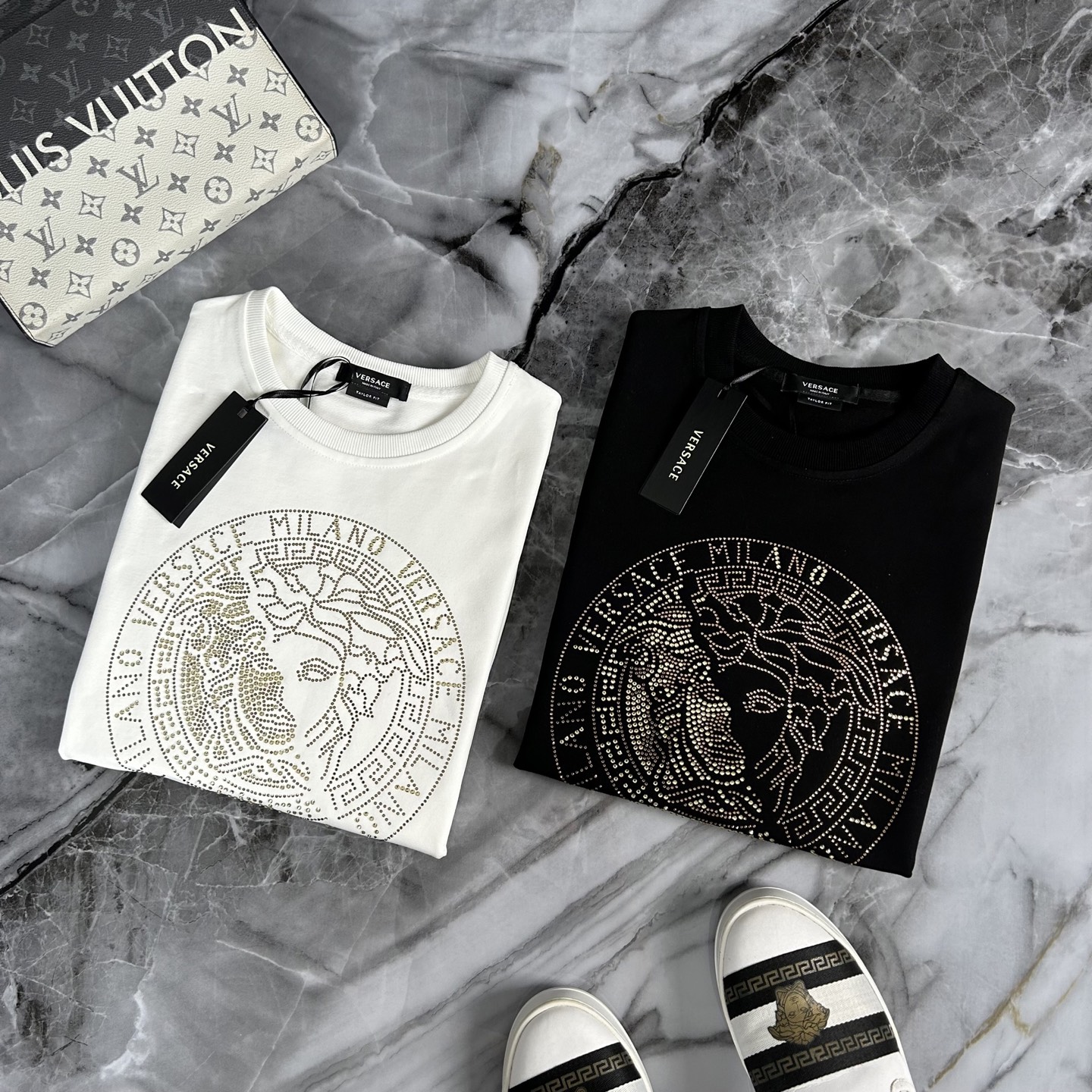 Este roupas é qualidade AAAAA 1: 1 (soberbo). Os materiais utilizados são idênticos aos originais. Versace marca marcas são indistinguíveis para o autêntico. As fotos tomam por roupas real, o que você recebe será 100% mesmo com nossas fotos.